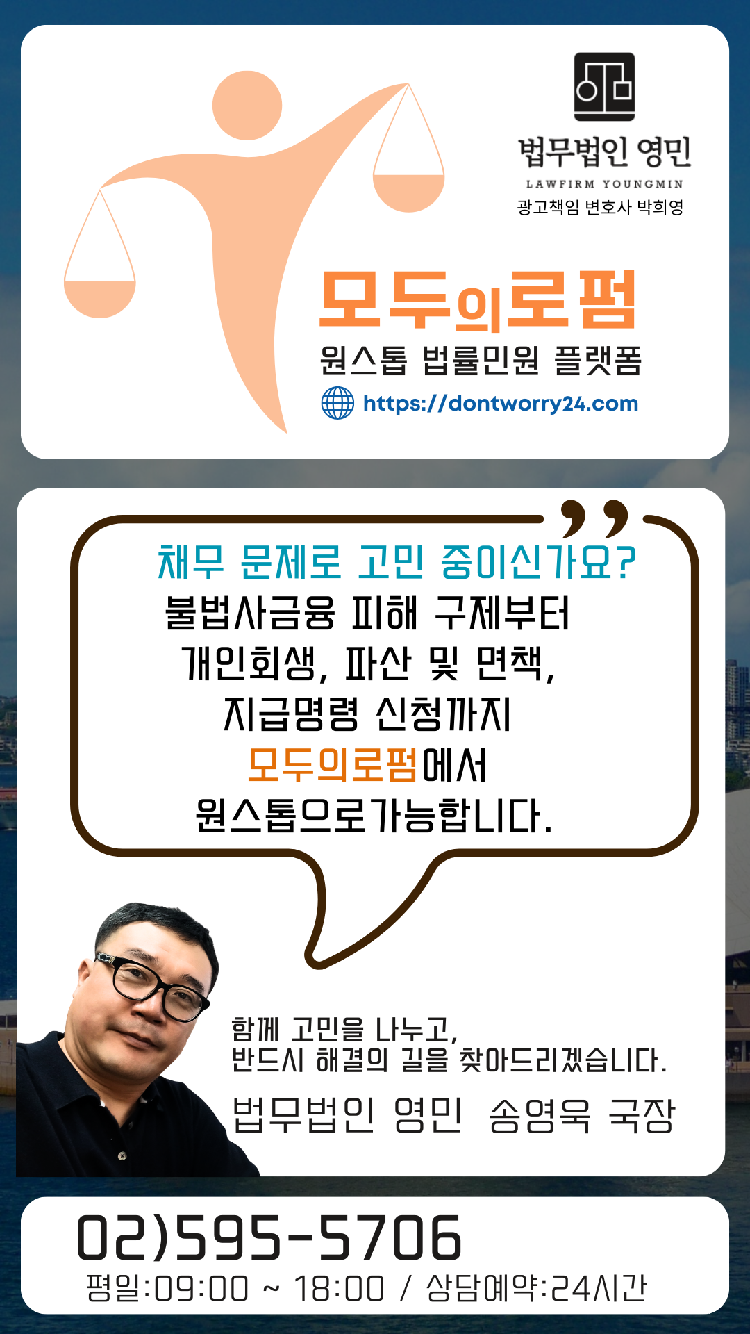 안녕하세요. 법무법인 영민의 송영욱 국장(송국장)입니다.