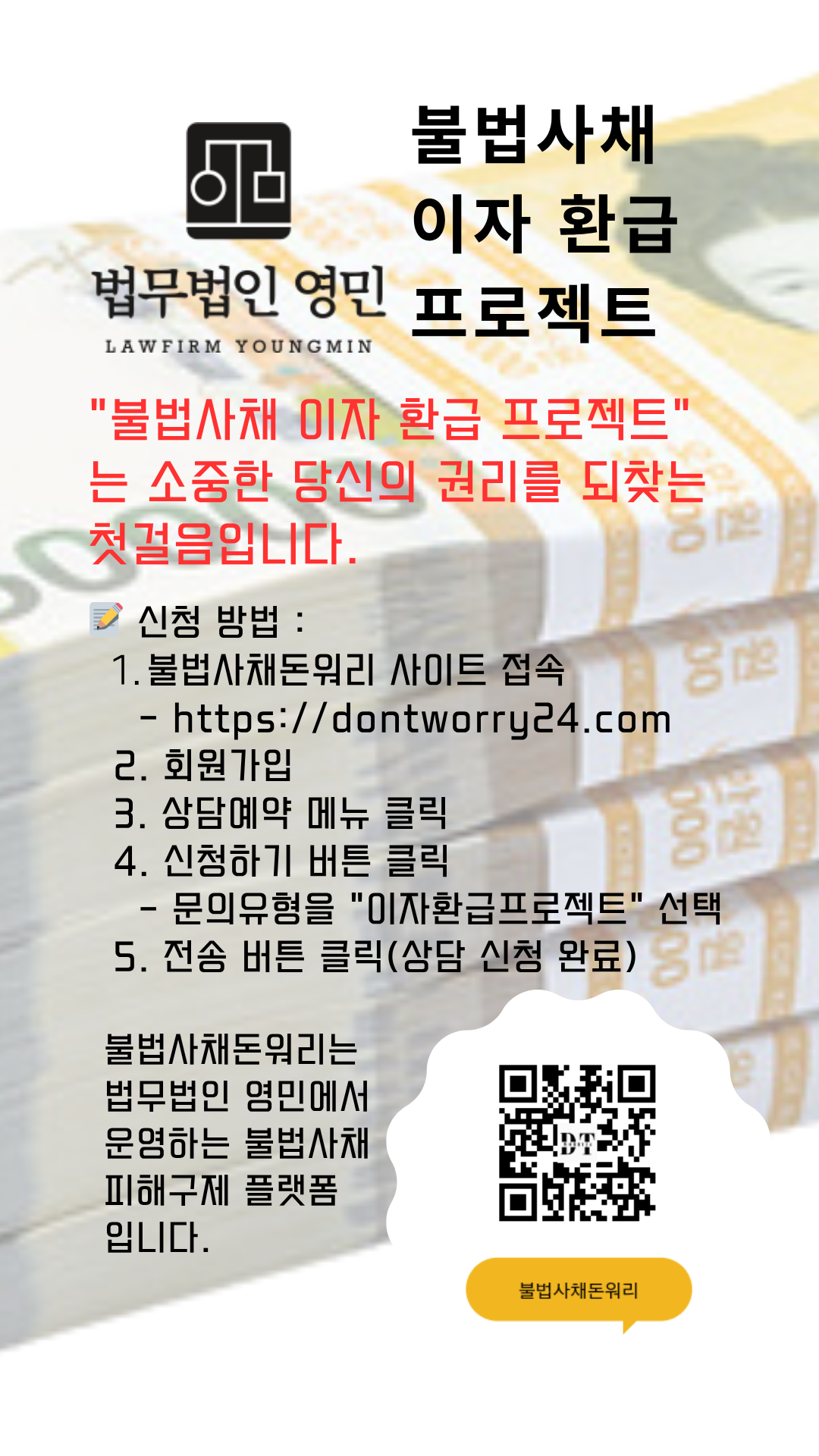 "불법사금융 이자 환급 프로젝트" 는 소중한 당신의 권리를 되찾는 첫걸음입니다.